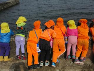 さあ、今年度最後の園外保育に行ってきました! 昨日から早朝にかけては大雨で、心配しましたが、出発ごろには曇り空!! 天の神様も味方して下さり、無事に大型バスで出発!! ペンギン水族館に到着すると、大水槽の中を泳ぐペンギン…