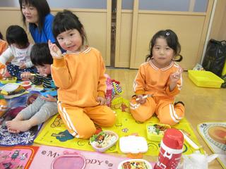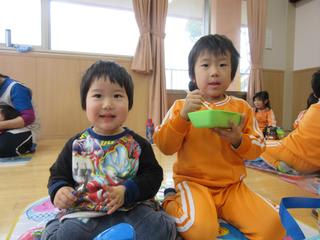 この日は多目的ホールで全クラス一緒にいただきました。