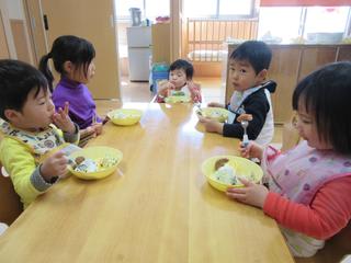 「早く食べたいね」「おいしそう」「いただきまーす」