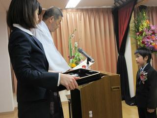 神社本庁証書や保育証書を受け取る姿は堂々たるもの。