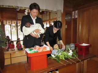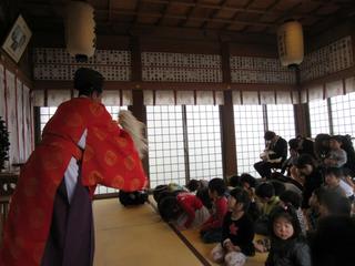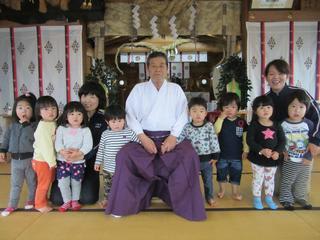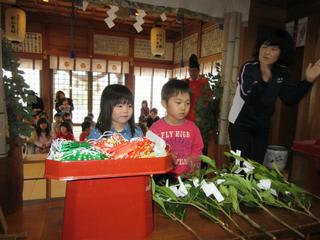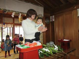 新入園児の子どもたちは保護者と一緒に玉串を捧げます。