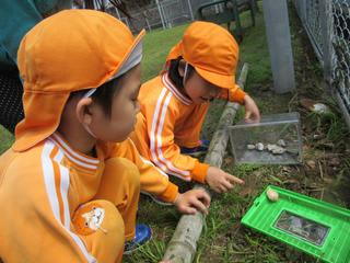 赤ちゃんかまきりの卵を見つけた卒園児に、