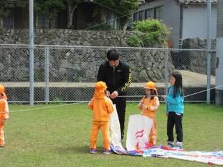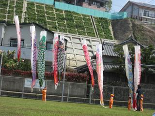 卒園児のおとうさんがこいのぼりを泳がせるところに遭遇