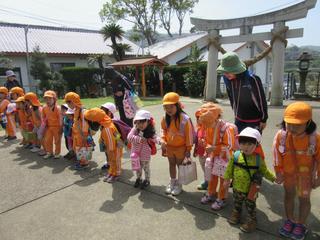 当初はバスに乗って他町へ行く予定でしたが、昨日今日の地震による安全を考慮して、保育園の近くまでお散歩。