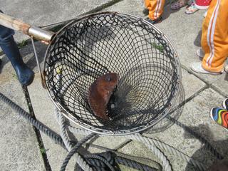 元気に跳ねる「鯛」に、子どもたちはビックリするやら喜ぶやら