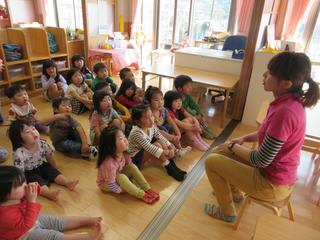 英語であそぼうの一コマです。 大きな声で歌ったり、かるた風の単語ゲームだったり、 子どもたちも、元気いっぱいに参加しています♪ 発音もなかなかさまになっているんですよ(*^^*)