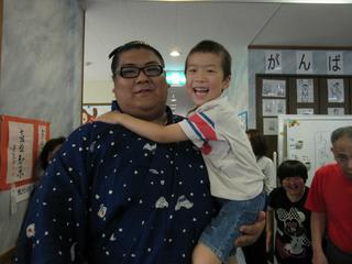年長児の体もヒョイッと片手で抱っこしてくださったんです。