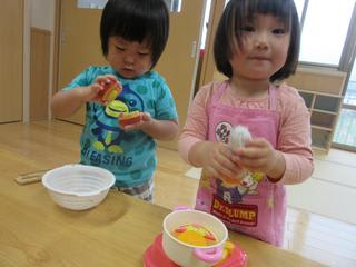 ままごと遊びやお絵かき、絵本を見たりと仲良く遊びました。