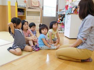 オルガンの音とともに、子ども達と保育士の歌声が響き渡る「歌の時間」。 🎼次は何の歌にしようか😊と聞く保育士に、「おばけ~👻」と答える2歳児さん。 手をゆらゆら揺らしながら、身振り手振りを付けての全身で「歌の時間」を楽しむ…