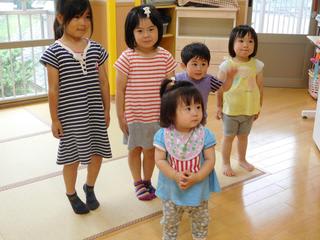 1歳児さんもお兄さん、お姉さんの真似をしながら、気をつけのポーズ(*^^)v