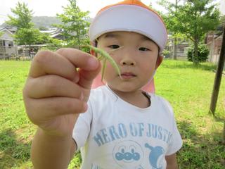 小学生にもらったバッタをしっかり触ることができていますねすごい