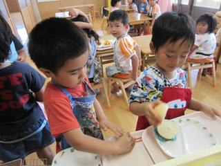 3、4、5歳児さんは自分たちで重ねていきます(^^♪