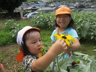 今日はお誕生会 8月生まれは3人でした♪ 今月の壁面はひまわりに囲まれながらスイカの中からお誕生者が出てきました プレゼントを渡す人もそれぞれ誕生者が指名しました(*^_^*) 1歳児の女の子も上手に渡すことができました…