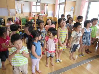 お帰りの会が始まり、元気に歌っていますよ