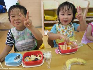 梅雨とは思えない晴天が続いていますね 25日は運動会! この日も練習をがんばりました 練習の後は、テラスで昼食タイム 「おなかがすいたね!」「いっぱい食べるぞ!」 テラスで食べる食事は格別 笑顔がすてきですね お友だちと…