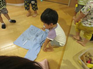 保育士の姿を見て、1歳児さんもお手伝いしてくれることに(*^^)v