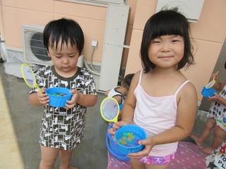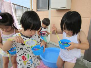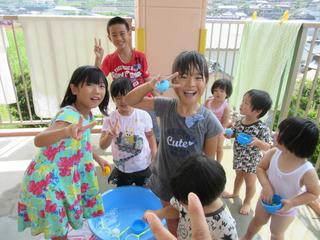 ある日の活動の様子。水遊びを楽しみながら、異年齢で過ごしました。