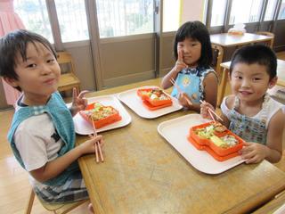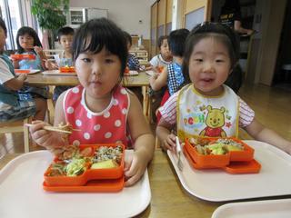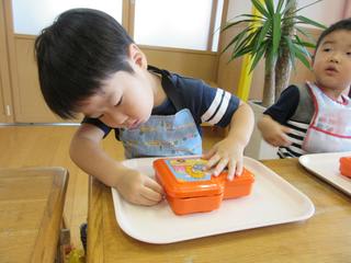 2歳児さんも今日は、以上児さんに交じって一緒にご飯を食べましたよ(^^♪