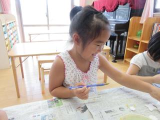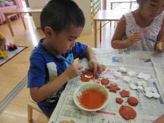 何やら絵の具で色を塗っている様子。