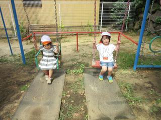 2歳児さんは園庭へ。