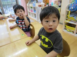 この日は1歳児さんが遊びに来て、一緒に「いただきまーす」