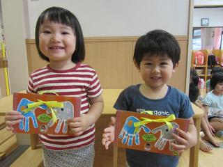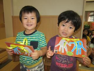 今日は敬老の日。各クラスでプレゼントを制作し、持ち帰っています。
