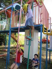 大型遊具では、お姉さんたちが上り棒に挑戦中。
