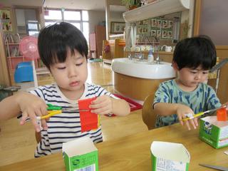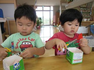 頑張る中でも、うまくハサミを使えなくて『ビリビリ・・・』思わずちぎってしまうお友達もいたそうですヨ