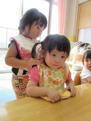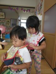 2歳児のお姉さんにちょっぴり甘えて、手伝ってもらっていました。