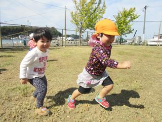 「位置についてよーいどん」の声に、颯爽と走る子どもたち