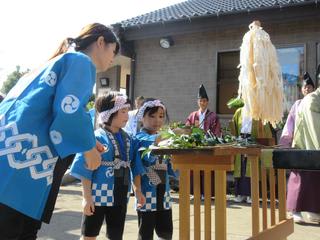本日、八幡神社秋の大祭が執り行われ、3、4、5歳児さんが参加しました。