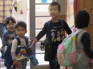 いつもの朝の登園風景です。
