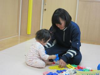 0歳児の人見知りをしてしまうような子も、優しいお姉さんにすっかり心を許しています
