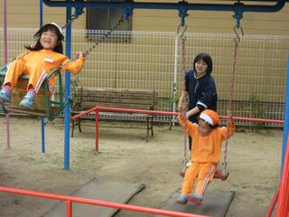 園庭でもお姉ちゃんたちにブランコを押してもらったり、鬼ごっこをしたり・・・