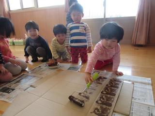 ここは八幡神社の境内。 4・5歳児の子どもたちが元気に太鼓の練習をしています。 あれっバチを下ろすのが早すぎたカナ ぅわあぁぁぁ!太鼓のバチと一緒に勢いで足まで上がっちゃった 間近に迫っているお遊戯会の練習と同時進行の琉…