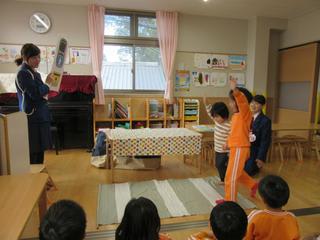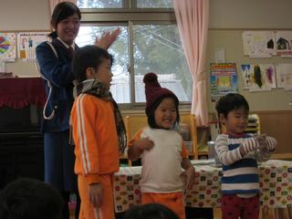 今日は交通安全教室が行われ、冬の防寒具、マフラーや手袋の着用について学びました。