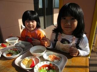 昼間はポカポカ暖かく、以上児さんはテラスでのランチ。