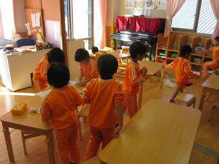 先日、3歳以上の子どもたちはお部屋の大掃除に大忙し!