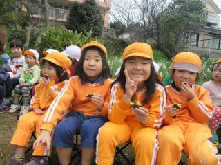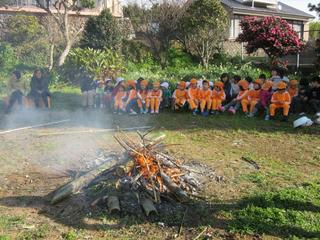 子どもたちは、地域の方から戴いた安納芋の焼き芋や飾り餅を美味しそうに頬張っていました