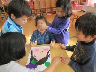 目隠しをして「目」や「鼻」や「口」などの位置を探しながら置いていくので、