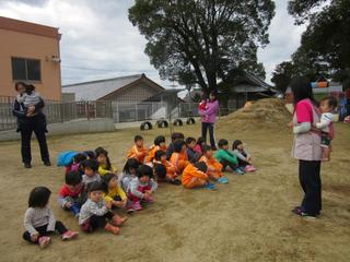 その後園庭に避難して大切なお話を聞き地震訓練を終えました。