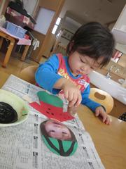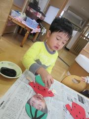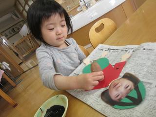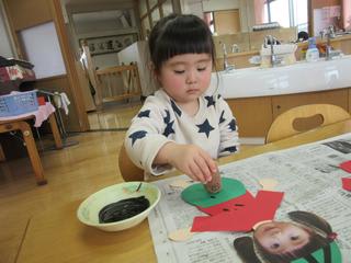 絵の具をペタペタ。