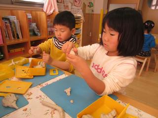 みんなでねんど遊びをしているところでした。