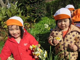 子どもたちのお散歩コースにもなっている畑で、寒いけど元気いっぱい