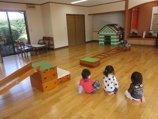 月曜日のあさは、全園児集まっての「お始まり」です。 今日は何やら椅子がならんでいます。 これは、バスの座席に見立てて、理想の正しいバスの乗降を教えあっていました(^_^)v 保育士や5歳児のお兄さん・お姉さんたちがお手本…