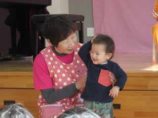 恒例となった、豆まき…今回はちょっとした劇を交え行ないました 子どもの心のなかに、いじわる鬼と泣き虫鬼が住んでいる設定でその鬼を追い出そうと言うことから始まりました 鬼なんかいないと言っているところに… 「ほら後ろに」 …