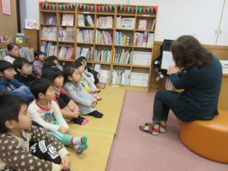 今日は『絵本の森の会』の方から絵本の読み聞かせをしてもらいました。