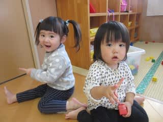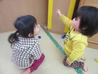 1歳児さんのお部屋に0歳児さんが遊びにきました!!