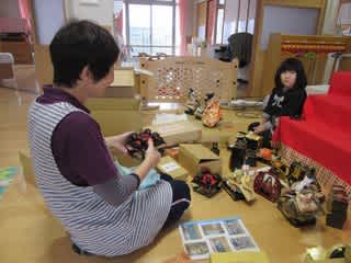 休日保育の日、利用していた年中児の女の子が雛壇の片づけを手伝ってくれました。