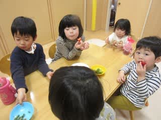 部屋の中で、折り紙やままごと遊び・ブロック等で仲良く遊びました。